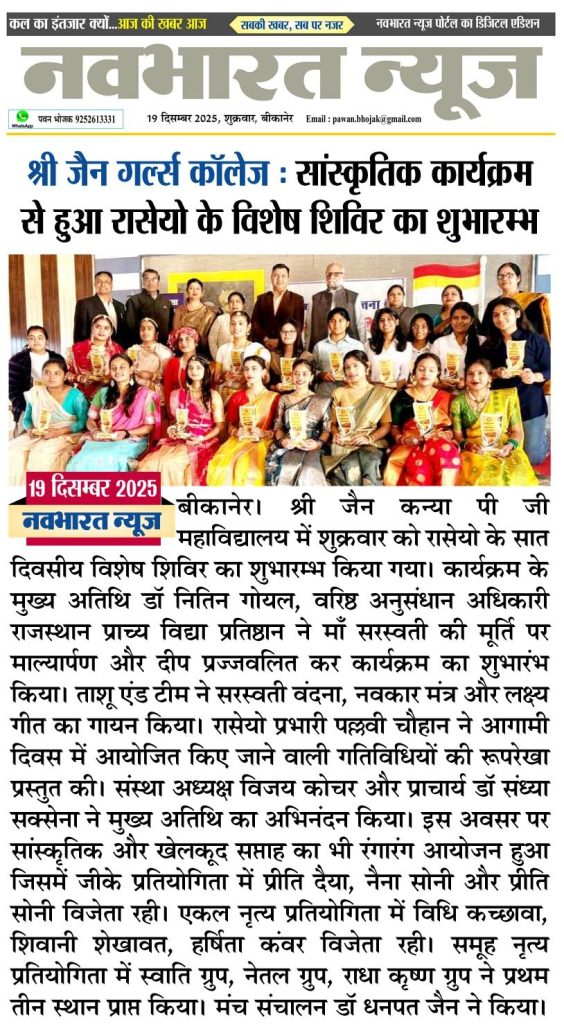 सांस्कृतिक कार्यक्रम से हुआ रासेयो के विशेष शिविर का शुभारंभ December 19, 2025December 22, 2025 admin